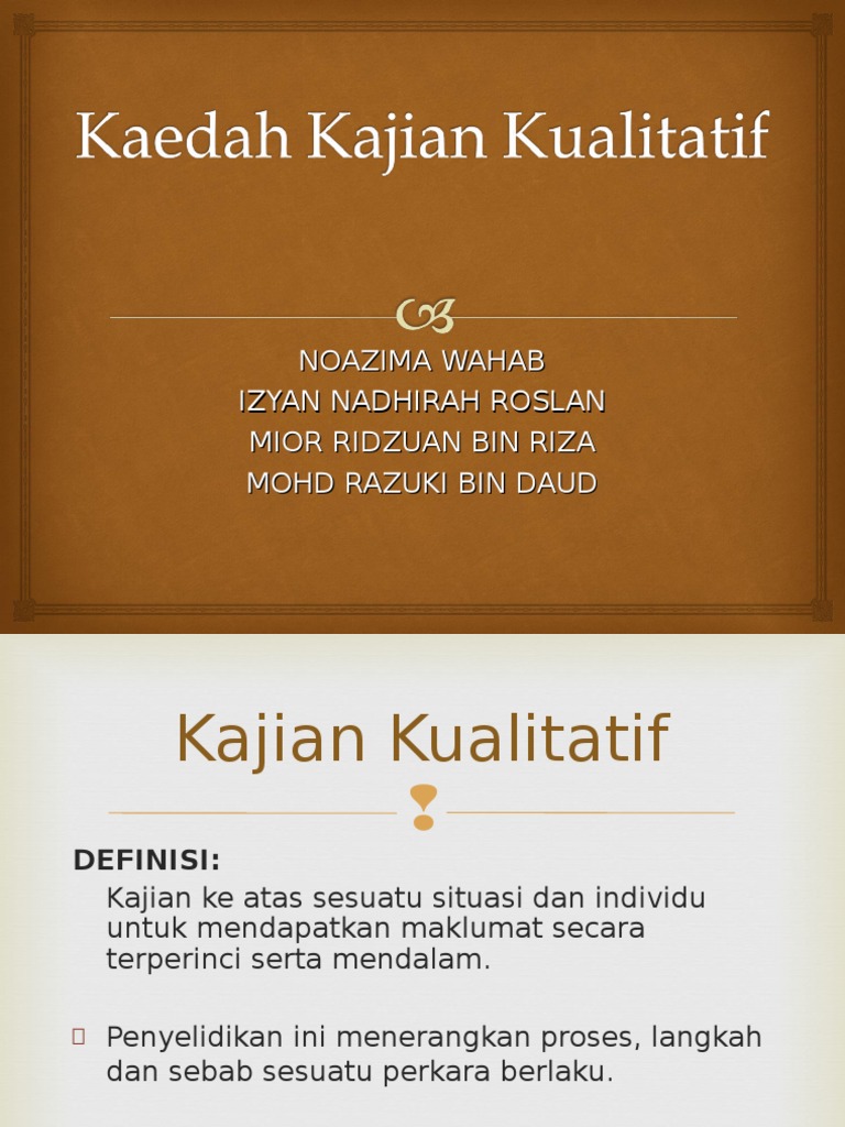 Kaedah Kajian Kualitatif from imgv2-2-f.scribdassets.com Kajian kualitatif kualitatif adalah kajian yang menggunakan menggunakan maklumat / data yang be!ifat <b>kualitatif data kajian kualitatif. Pendekatan teoretis yang digunakan adalah kajian stilistika. Reka bentuk ditetapkan sebelum data dipungut. Tujuan kajian & reka bentuk kajian kualitatif i. Metode kualitatif metode kualitatif digunakan untuk kepentingan yang berbeda bila dibandingkan dengan metode kuantitatif. Reka bentuk bersifat mudah lentur / fleksibel, boleh diubahsuai mengikut keadaan dan keperluan situasi. Sebuah karya tulis terdiri dari dua jenis yaitu karya tulis ilmiah dan karya tulis non ilmiah. .eka bentuk diteta$kan !ebelum data di$ungut.