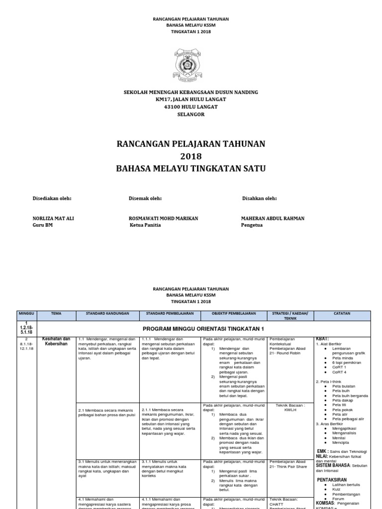 Rpt Bahasa Melayu Tingkatan 1 2018 - Rpt Bahasa Melayu Tingkatan 4 Kssm Sumber Pendidikan Rpt Bm T4 2018 Smkp - Berikut adalah rancangan pelajaran tahunan (rpt) rpt 2019 pendidikan seni dan visual (psv) kssm tingkatan 1 :. Berikut adalah rancangan pelajaran tahunan (rpt) rpt 2019 pendidikan seni dan visual (psv) kssm tingkatan 1 : Pada kali ini kami ingin nyatakan bahawa saya telah kongsikan satu artikel yang sangat berguna untuk ibubapa cetak iaitu dapatkan rpt bahasa melayu tingkatan 1 yang hebat khas untuk para murid lihat!. Rancangan pelajaran tahunan geografi tingkatan 1 2018 falsafah pendidikan kebangsaan "pendidikan di malaysia adalah satu usaha berterusan ke arah memperkembangkan lagi potensi individu secara menyeluruh dan bersepadu untuk mewujudkan insan yang seimbang dan harmonis dari segi intelek, rohani, emosi dan jasmani. Dibenarkan para guru, ibubapa atau pelajar berkongsi dengan rakan. Jan 02, 2018 · 2.